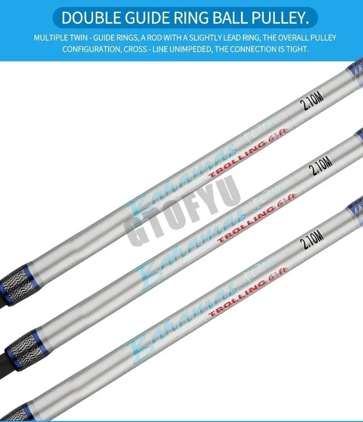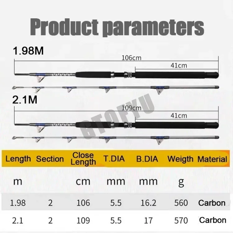 This 1.98M–2.1M saltwater spinning rod is built for big game and offshore trolling. Its two-piece design allows easy transport and storage. The rod supports up to 50kg, making it ideal for large saltwater species. Durable roller guides reduce friction for smoother casting and retrieval. Designed for use on boats or open water, it withstands harsh ocean conditions. The high-strength construction ensures longevity even under heavy strain. Lightweight design provides balance and reduces fatigue during long fishing trips. Perfect for experienced anglers targeting tuna, marlin, or other large fish. The rod combines strength, precision, and durability for demanding fishing adventures. This offshore fishing rod is essential for serious saltwater anglers seeking reliable performance.