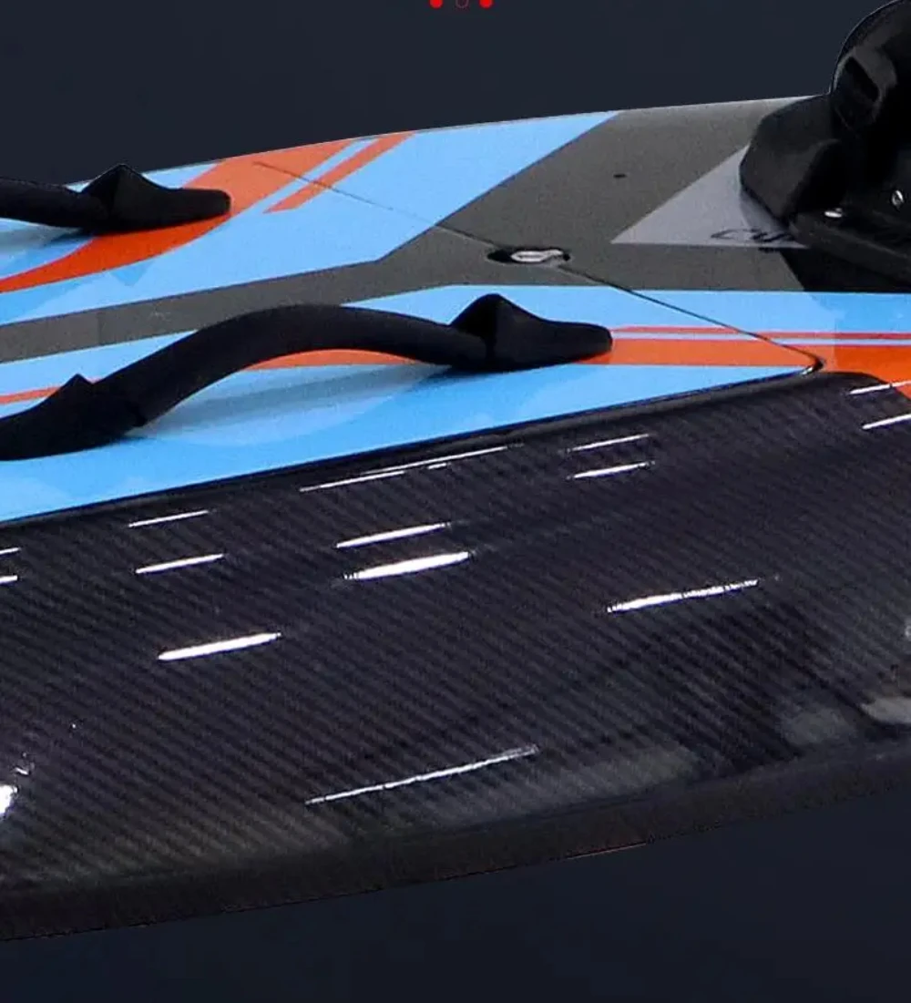 This carbon fiber electric surfboard delivers powerful performance for serious water sports enthusiasts. Its professional-grade 15 kW motor provides incredible speed and smooth acceleration on open water. The carbon fiber construction ensures superior strength while keeping the board lightweight and agile. Designed for high stability, it allows riders to glide and carve with precision. The advanced propulsion system offers responsive control even at top speeds. A streamlined shape reduces drag for a faster, more thrilling ride. The board features durable waterproof sealing for safe, long-lasting use in various water conditions. Its high-capacity battery supports extended playtime for longer surf sessions. Suitable for both advanced riders and adrenaline-seeking newcomers, it elevates water adventures to the next level. This premium electric surfboard is built for speed, strength, and unforgettable on-water excitement.
