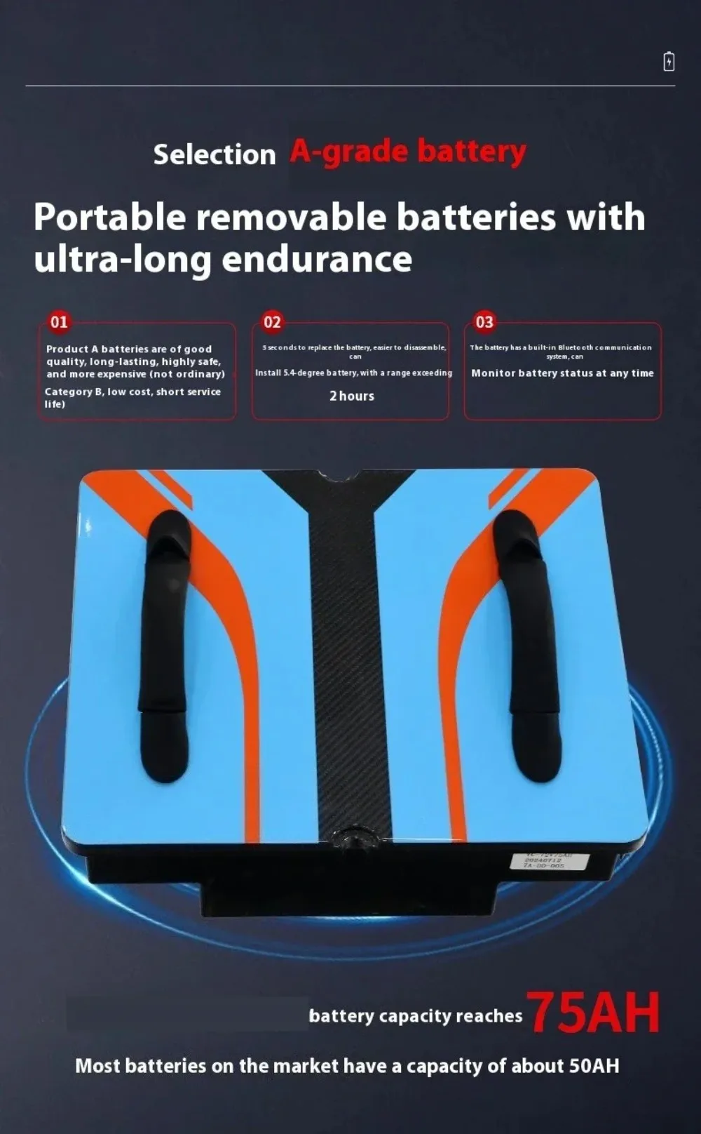 Battery capacity:96V 75Ah